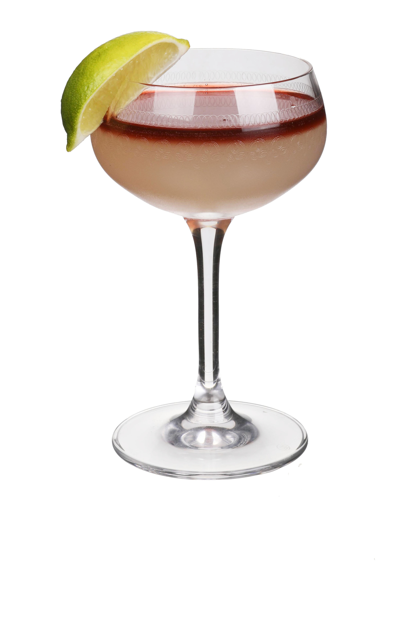 With: Mezcal, lime juice, sugar syrup, and red wine.